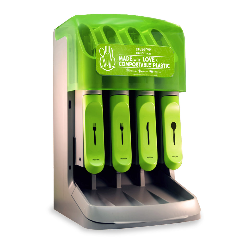 - Compatible with Preserve Recycled and Compostable Cutlery only. Please note that Preserve dispensers do not work with other brands of cutlery.